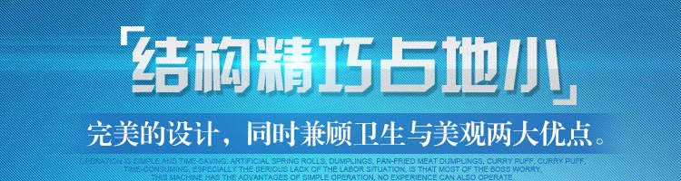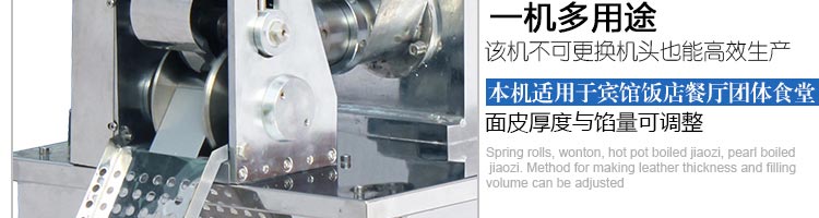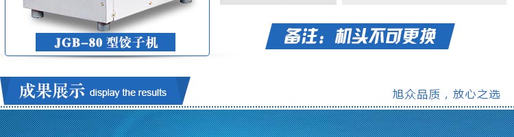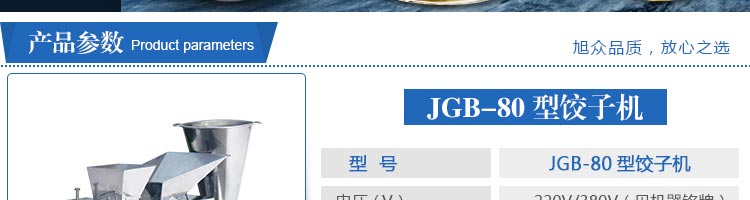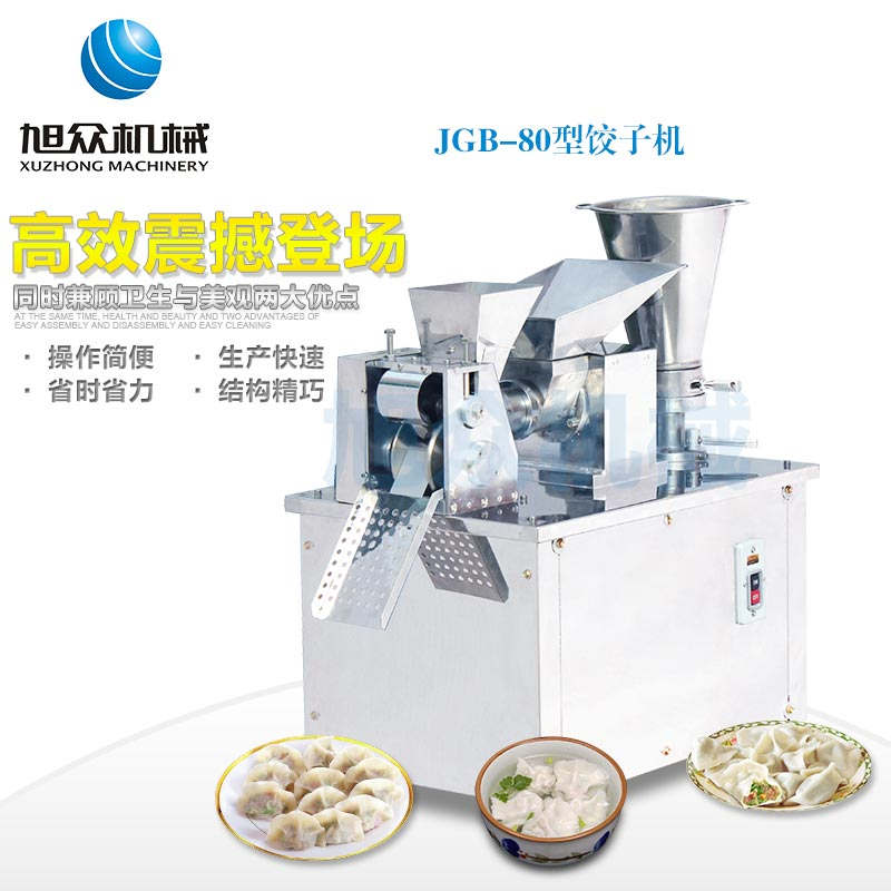 JGB-80型號餃子機,本機是一款可生產(chǎn)各種肉餡、肉菜混合餡、全菜餡及其他種餡餃子的設(shè)備。包制出來的餃子可蒸、煮、炸、煎等多種調(diào)理。適用于賓館、飯店、餐廳、團(tuán)體食堂加工,幼兒園、速凍餃子生產(chǎn)。