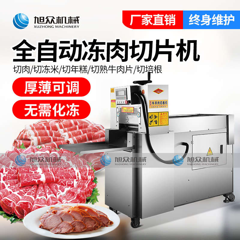 XZ-羊肉切片機(jī),一次成片切片神器,全自動凍肉數(shù)控切片機(jī),肉片自動打卷|厚薄可調(diào)|無需化凍|一機(jī)多用。你還用手工切片嗎?旭眾全自動羊肉切片機(jī)一機(jī)多用,輕松解決切割問題。
